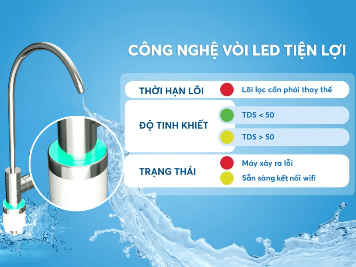 Như vậy từ công nghệ đèn LED hiện đại này, bạn có thể biết được khi nào cần thay lõi lọc một cách tiện lợi mà không cần phải mở hệ thống lõi lọc ra để kiểm tra.