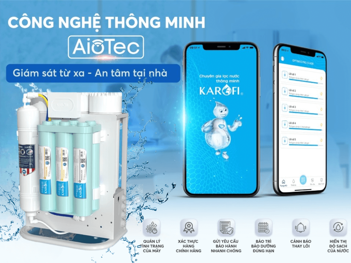 Máy lọc nước Karofi KAQ-U95 còn tích hợp công nghệ AiOTec thông minh cho phép giám sát máy lọc nước từ xa trên chính thiết bị di động của bạn. Công nghệ AiOTec cho phép quản lý tình trạng của máy, xác thực hàng chính hãng, cảnh báo thay lõi, hiển thị độ sạch của nước, gửi yêu cầu bảo hành… Với AiOTec, bạn có thể yên tâm giám sát máy từ bất cứ đâu và bất cứ lúc nào.
