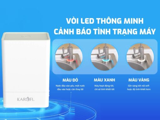 Như vậy chỉ cần quan sát màu sắc hiển thị trên đèn LED, bạn có thể dễ dàng nắm bắt được các thông tin như độ tinh khiết của nước, cảnh báo thay lõi tự động, cảnh báo nước đầu vào yếu… để sử dụng máy dễ dàng, thuận tiện hơn.