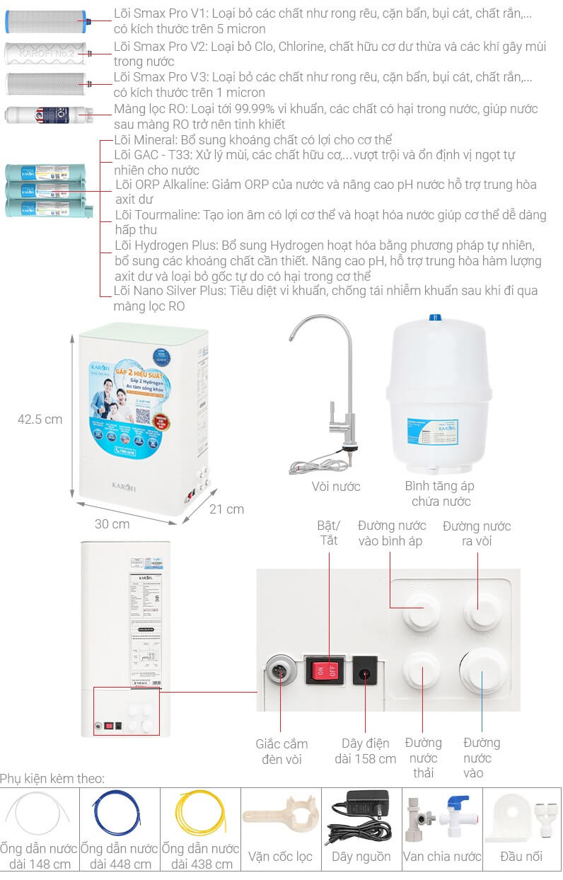 Chi tiết các bộ phận máy lọc nước Karofi KAQ-U98 Pro
