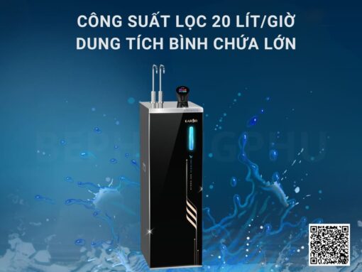 Công suất lọc 20 lít/giờ, dung tích bình chứa lớn