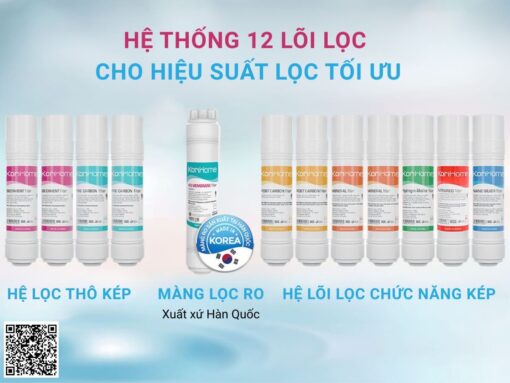 – 02 Lõi Hydrogen Alkaline: Tạo nước kiềm giàu Hydrogen, hỗ trợ loại bỏ chất oxy hóa