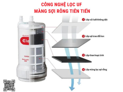 Máy lọc nước Mitsubishi Cleansui EU201 sử dụng công nghệ lọc UF màng sợi rỗng tiên tiến đến từ Nhật Bản, giúp lọc sạch cặn bẩn, vi khuẩn, clo dư, kim loại hòa tan trong nước… nhưng vẫn giữ được các khoáng chất tự nhiên có lợi trong nước, tạo nguồn nước sạch, an toàn và tốt cho sức khoẻ.
