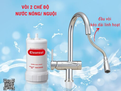 Máy lọc nước Mitsubishi Cleansui EU201 trang bị vòi lấy nước chuyên dụng, cung cấp 2 chế độ nước đa dạng cho người dùng lựa chọn: