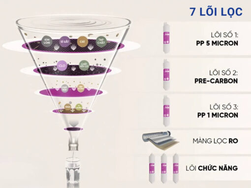 Hệ thống 7 lõi lọc cho hiệu suất lọc tối ưu