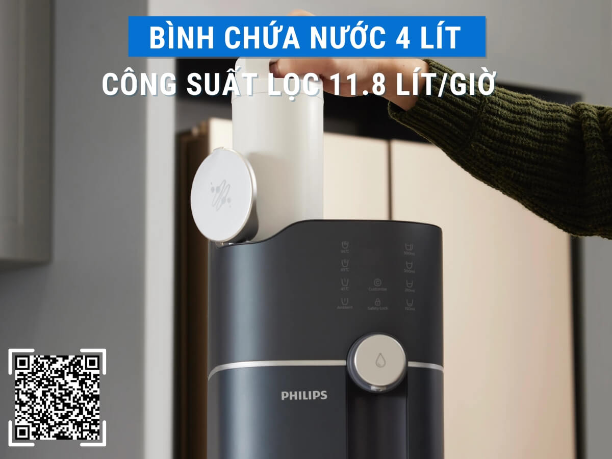 Bình chứa nước 4 lít, công suất lọc 11.8 lít/giờ