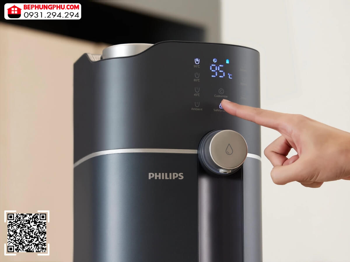 Máy lọc nước Philips ADD6910/90 trang bị hệ thống điều khiển cảm ứng hiện đại, cung cấp sự tiện lợi tối đa cho quá trình sử dụng. Chỉ với thao tác chạm, bạn dễ dàng chọn được nhiệt độ nước, mức nước cũng như lấy nước nhanh chóng.