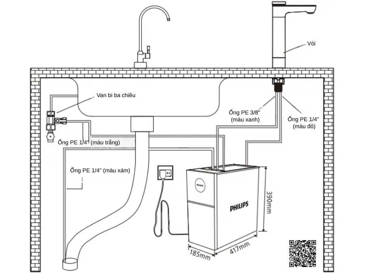 Máy lọc nước Philips AUT7005/97 với thiết kế âm tủ hiện đại, sang trọng