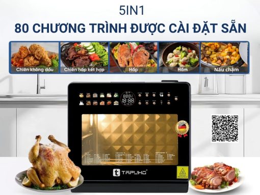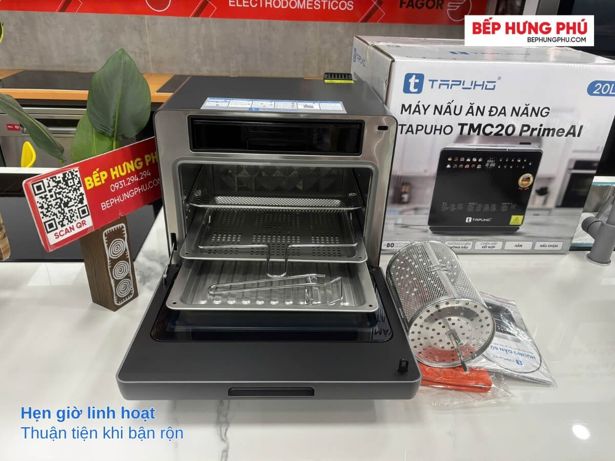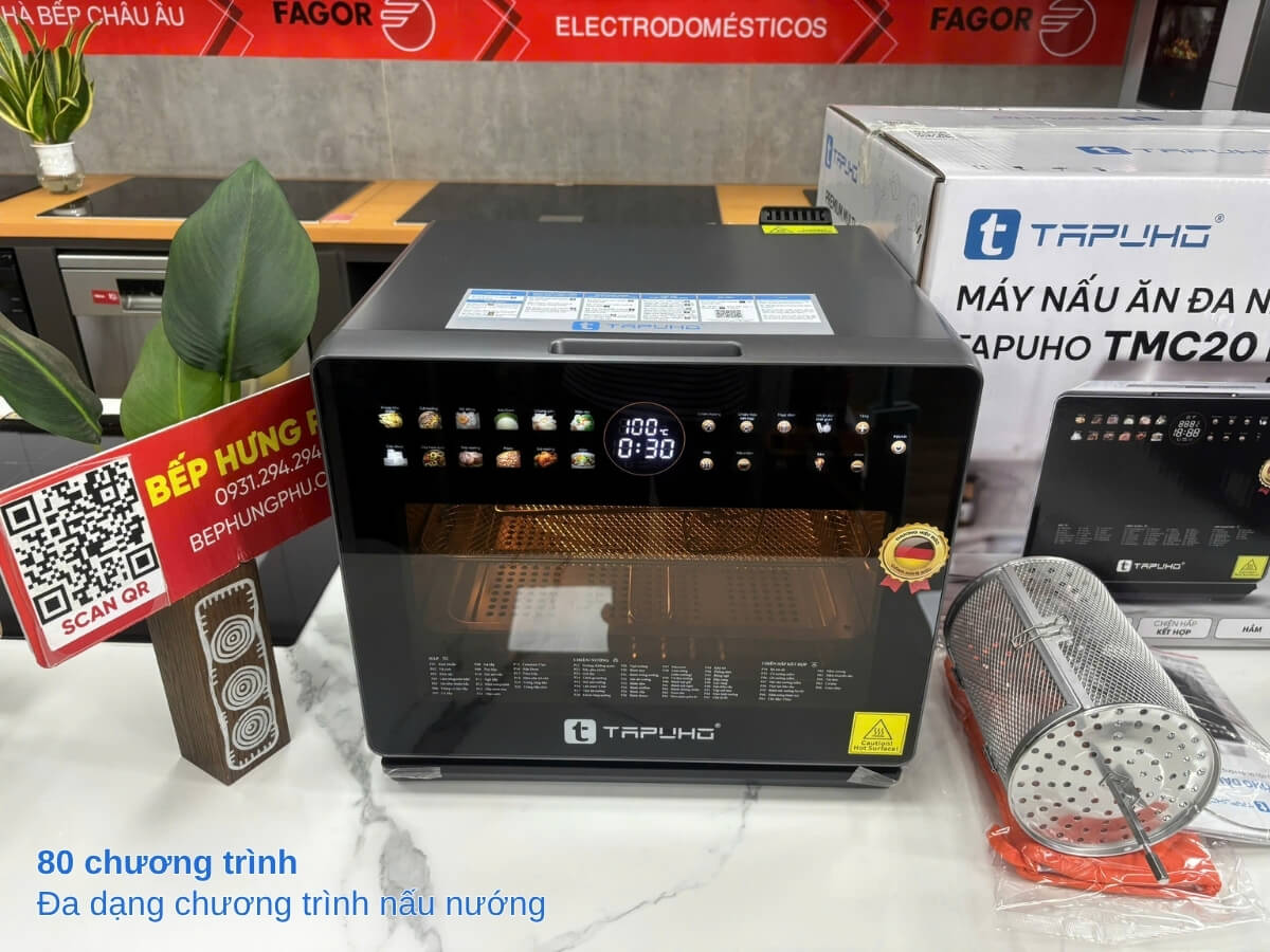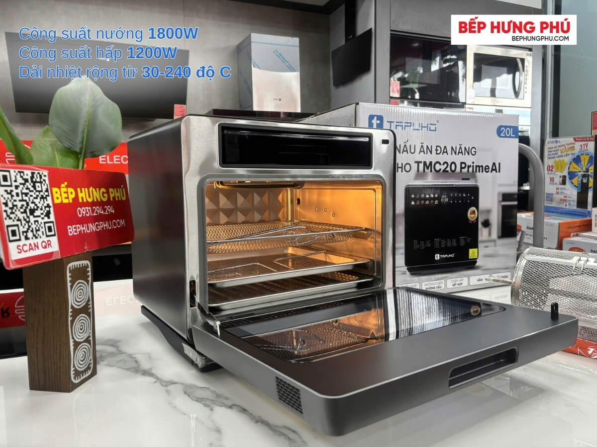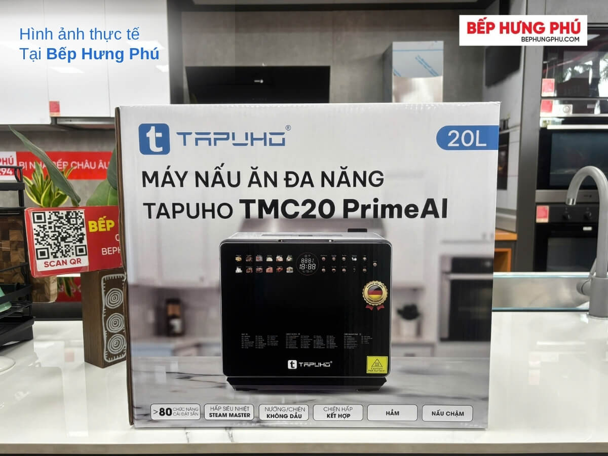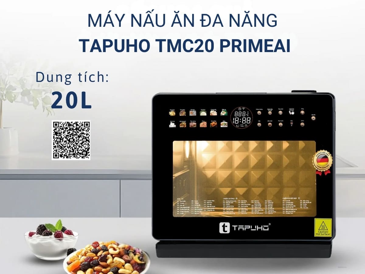 Máy nấu ăn đa năng Tapuho TMC20 PrimeAI là bước tiến lớn trong công nghệ nấu ăn, một phiên bản nâng cấp toàn diện, kế thừa thành công của các model đi trước. Với dung tích 20 lít, sản phẩm tích hợp những công nghệ độc quyền và hệ thống điều khiển cảm ứng 100% thông minh. Hội tụ 5 chức năng chính: Chiên không dầu – Hấp – Chiên hơi nước kết hợp – Hầm – Nấu chậm, cùng menu hơn 80 chương trình cài đặt sẵn, TMC20 PrimeAI sẵn sàng trở thành trợ lý đắc lực, đáp ứng mọi nhu cầu sáng tạo ẩm thực của gia đình Việt.