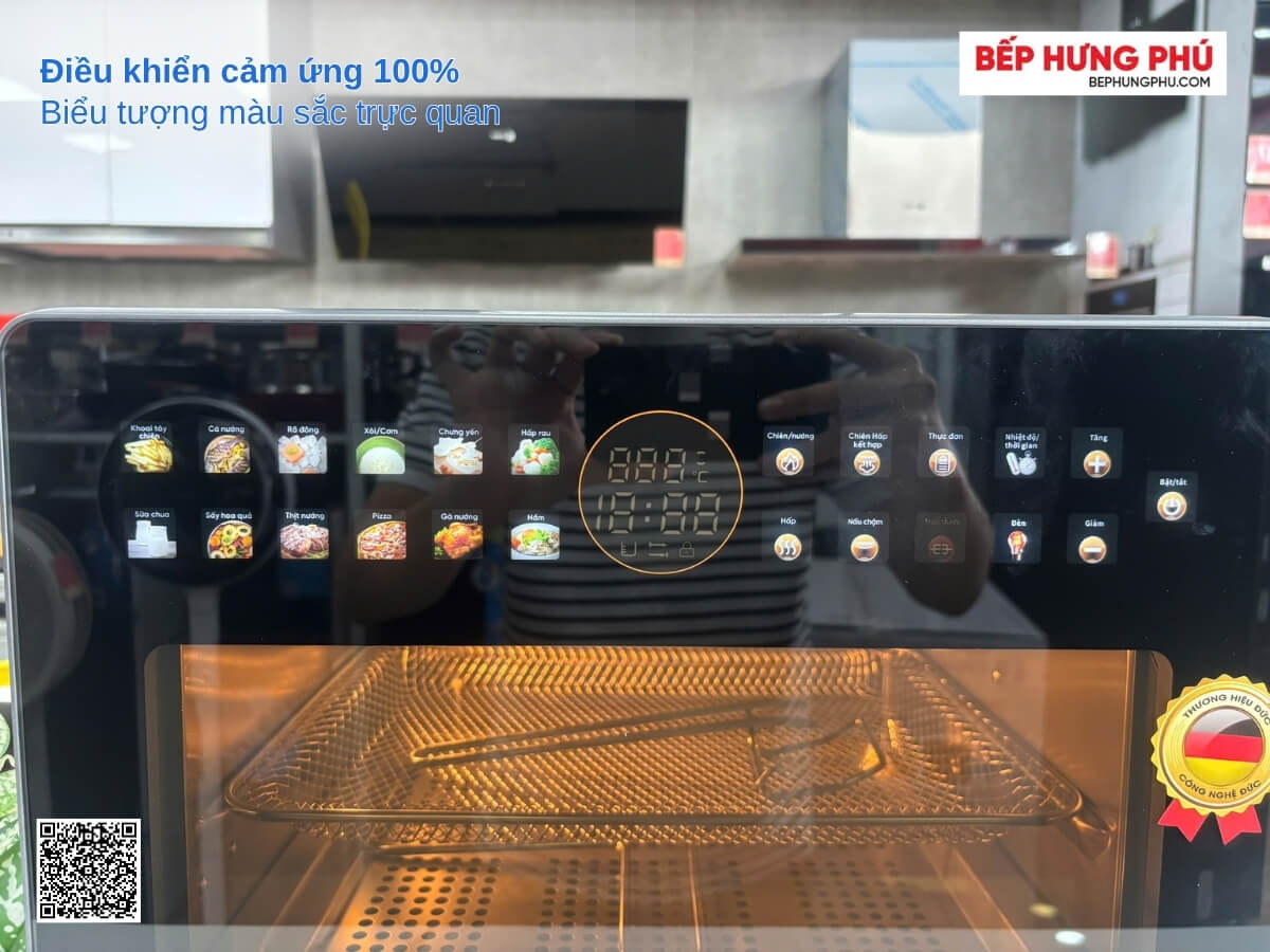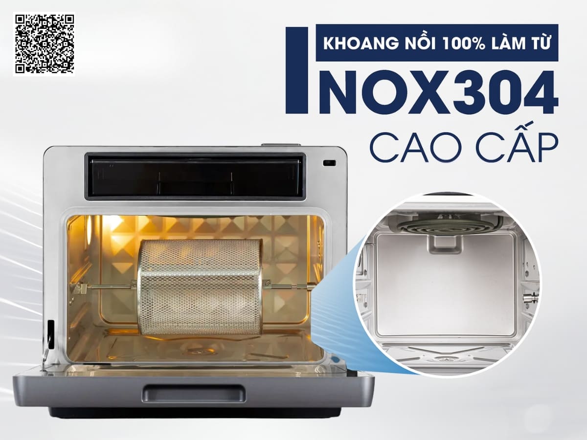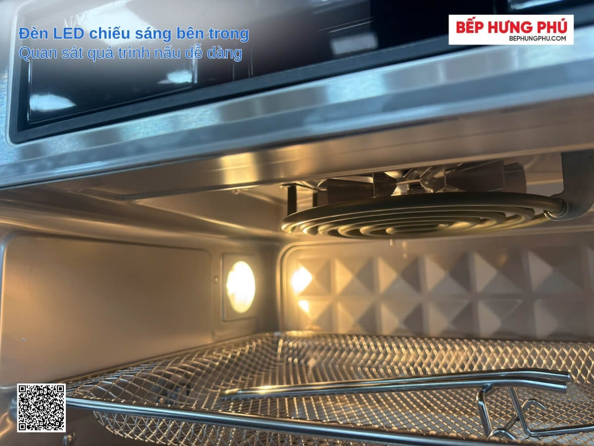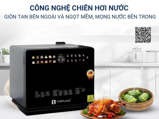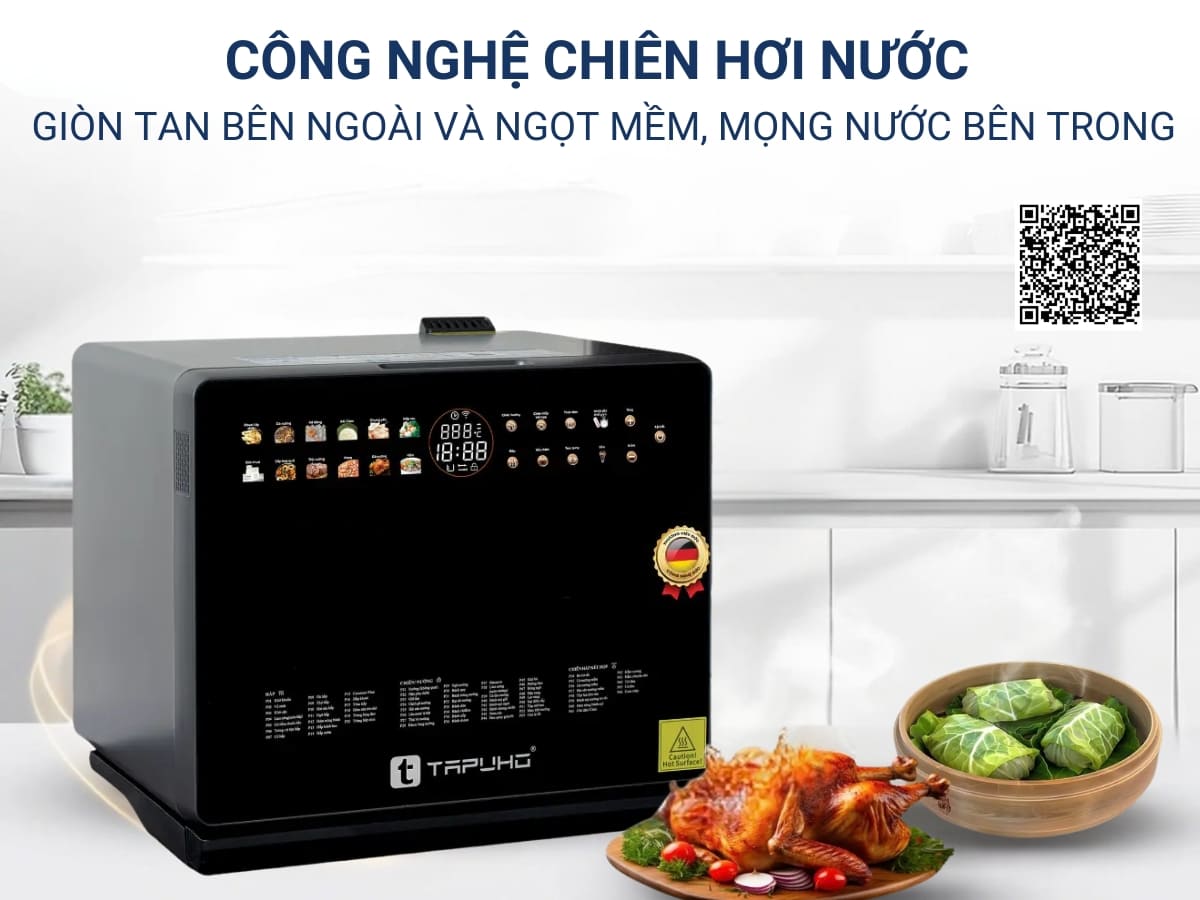 Đây là sự kết hợp đỉnh cao giữa chiên không dầu và hấp. Hơi nước siêu nhiệt giúp giữ độ ẩm, trong khi khí nóng đối lưu làm giòn lớp vỏ bên ngoài, tạo nên kết cấu hoàn hảo cho món ăn: giòn tan bên ngoài, mọng nước ngọt mềm bên trong. Chức năng này khắc phục hoàn toàn tình trạng món ăn bị khô so với nồi chiên thông thường.
