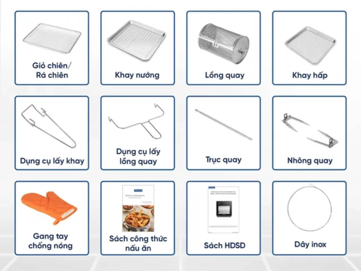 Khi mua Máy nấu ăn đa năng Tapuho TMC20 PrimeAI, bạn sẽ nhận ngay bộ phụ kiện inox 304 cao cấp, dày dặn và chất lượng hơn các phiên bản trước:
