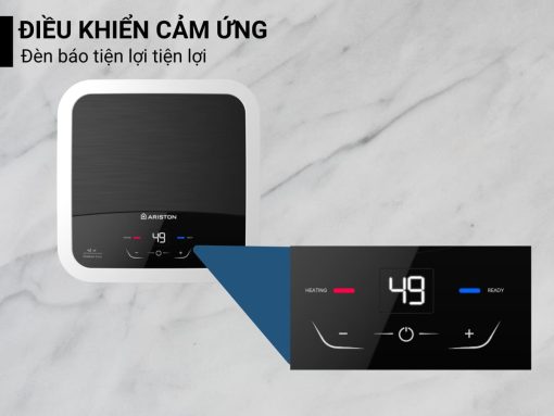 Máy nước nóng Ariston Andris2 Lux 15 trang bị màn hình LED hiển thị nhiệt độ và các nút bấm cảm ứng để điều chỉnh nhiệt độ theo nhu cầu. Máy cũng có đèn báo nước nóng đã sẵn sàng, giúp người dùng chủ động khi sử dụng.