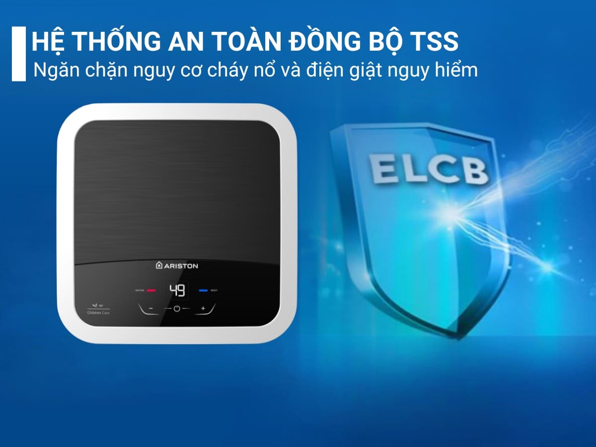 Máy nước nóng Ariston Andris2 Lux 15 được trang bị hệ thống an toàn đồng bộ TSS (Total Safety System) là một lá chắn bảo vệ toàn diện, mang lại sự an tâm tuyệt đối. Hệ thống này bao gồm hai thành phần chính: Cầu dao chống giật ELCB sẽ tự động ngắt nguồn điện ngay lập tức nếu phát hiện bất kỳ sự cố rò rỉ điện nào. Cùng với đó, Rơ le nhiệt điện tử TBSE thế hệ mới có độ chính xác cao, liên tục kiểm soát nhiệt độ và sẽ tự động ngắt làm nóng khi nước đạt đến nhiệt độ cài đặt, đồng thời ngăn chặn tuyệt đối tình trạng đun khô hoặc quá nhiệt (gây bỏng), bảo vệ người dùng và thiết bị.