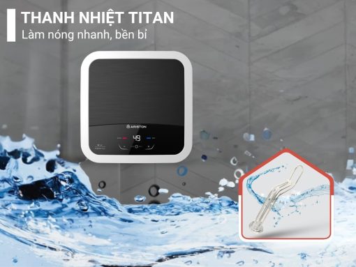 Máy nước nóng Ariston Andris2 Lux 15 sử dụng thanh đốt 100% làm bằng Titan cho khả năng gia nhiệt nhanh, siêu bền bỉ nhờ khả năng chống ăn mòn tuyệt đối, hạn chế bám cặn trong suốt quá trình sử dụng.