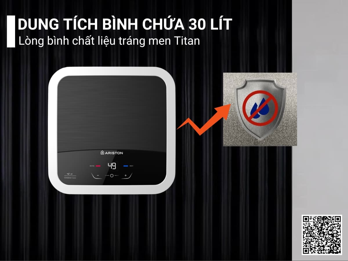 Dung tích bình chứa 30 lít, chất liệu tráng men Titan cao cấp