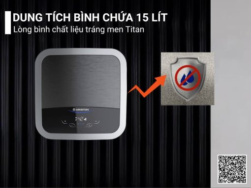 Dung tích bình chứa 15 lít, chất liệu tráng men Titan cao cấp