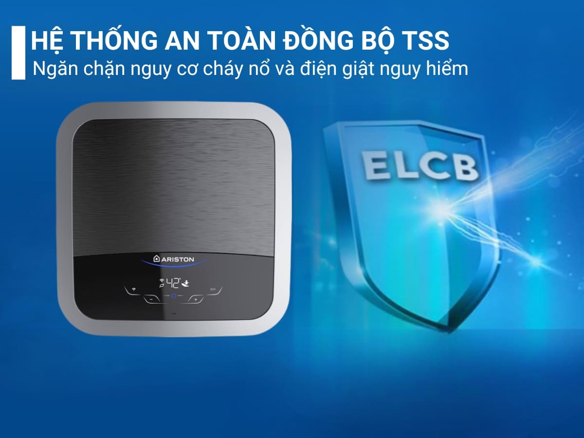 Máy nước nóng Ariston Andris2 Top Wifi 15 được trang bị hệ thống an toàn đồng bộ TSS (Total Safety System) là một lá chắn bảo vệ toàn diện, mang lại sự an tâm tuyệt đối. Hệ thống này bao gồm hai thành phần chính: Cầu dao chống giật ELCB sẽ tự động ngắt nguồn điện ngay lập tức nếu phát hiện bất kỳ sự cố rò rỉ điện nào. Cùng với đó, Rơ le nhiệt điện tử TBSE thế hệ mới có độ chính xác cao, liên tục kiểm soát nhiệt độ và sẽ tự động ngắt làm nóng khi nước đạt đến nhiệt độ cài đặt, đồng thời ngăn chặn tuyệt đối tình trạng đun khô hoặc quá nhiệt (gây bỏng), bảo vệ người dùng và thiết bị.