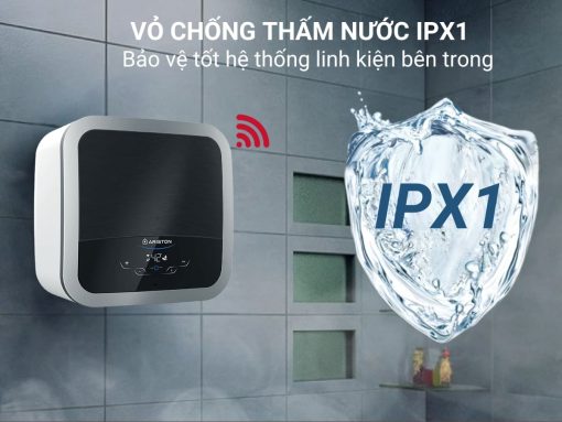 Máy nước nóng Ariston Andris2 Top Wifi 15 có phần vỏ máy được chế tạo với khả năng chống thấm nước theo tiêu chuẩn kháng nước IPX4. Vì vậy có thể bảo vệ tốt các linh kiện bên trong cũng như đảm bảo tuổi thọ sản phẩm và an toàn cho người dùng.