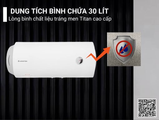 Dung tích bình chứa 30 lít, chất liệu tráng men Titan cao cấp
