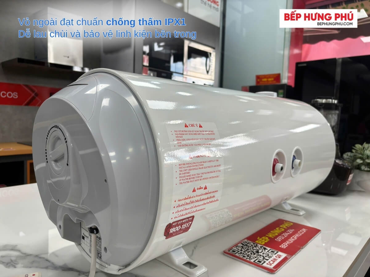 Máy nước nóng Ariston PRO R 50 SH 2.5 FE có phần vỏ máy được chế tạo với khả năng chống thấm nước theo tiêu chuẩn kháng nước IPX1. Vì vậy có thể bảo vệ tốt các linh kiện bên trong cũng như đảm bảo tuổi thọ sản phẩm và an toàn cho người dùng.