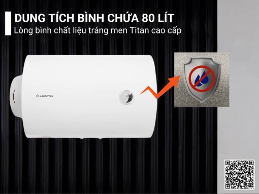 Dung tích bình chứa 80 lít, chất liệu tráng men Titan cao cấp
