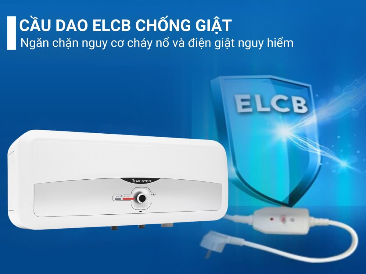 Hệ thống cầu dao ELCB trên máy nước nóng Ariston SL2 20 RS 2.5 FE có khả năng tự động ngắt nguồn điện khi phát hiện dòng điện vượt quá định mức cho phép hoặc khi có sự cố rò rỉ điện xảy ra. Từ đó ngăn chặn nguy cơ cháy nổ và điện giật gây nguy hiểm cho người sử dụng.