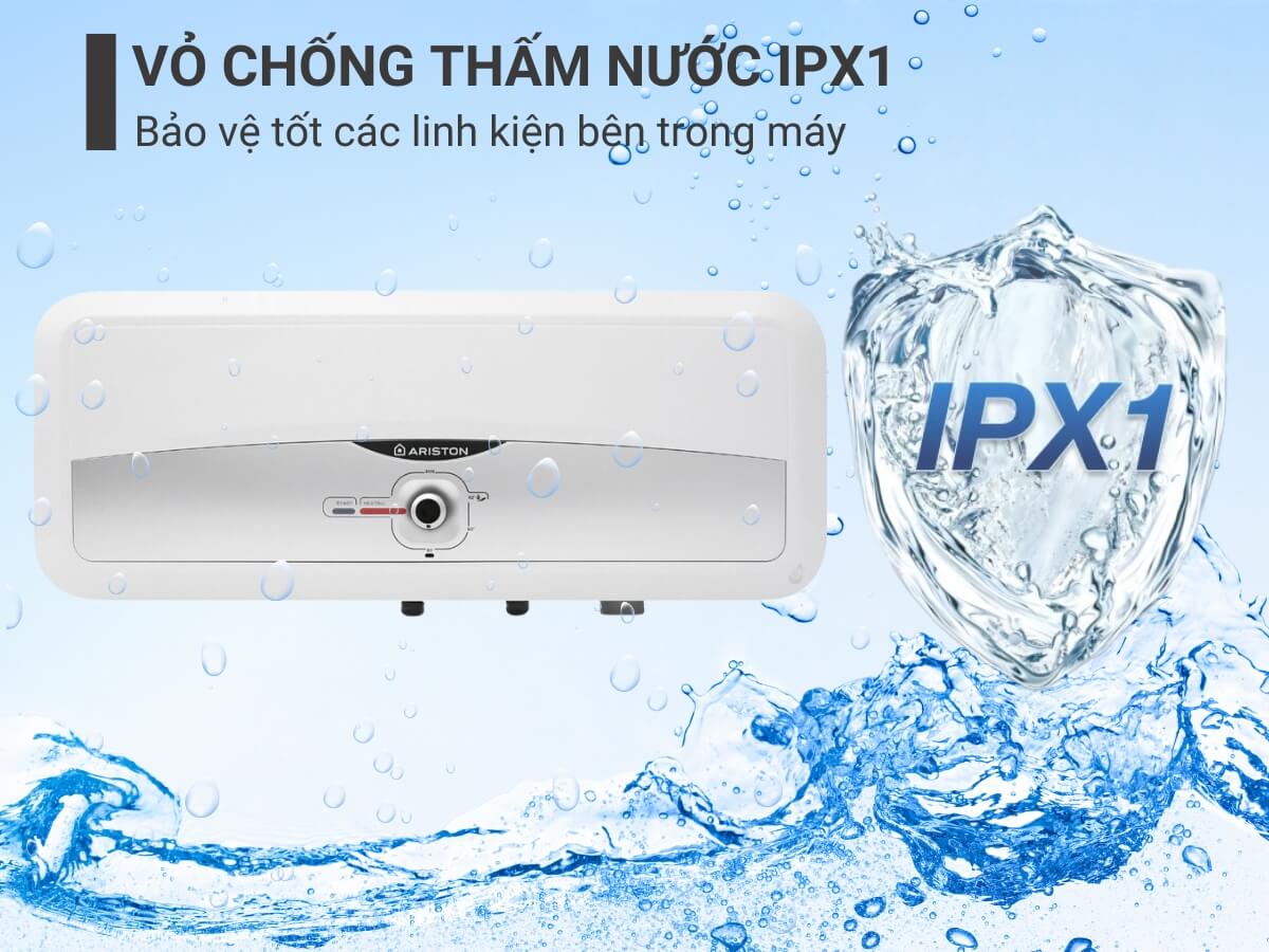 Máy nước nóng Ariston SL2 20 RS 2.5 FE có phần vỏ máy được chế tạo với khả năng chống thấm nước theo tiêu chuẩn kháng nước IPX1. Vì vậy có thể bảo vệ tốt các linh kiện bên trong cũng như đảm bảo tuổi thọ sản phẩm và an toàn cho người dùng.