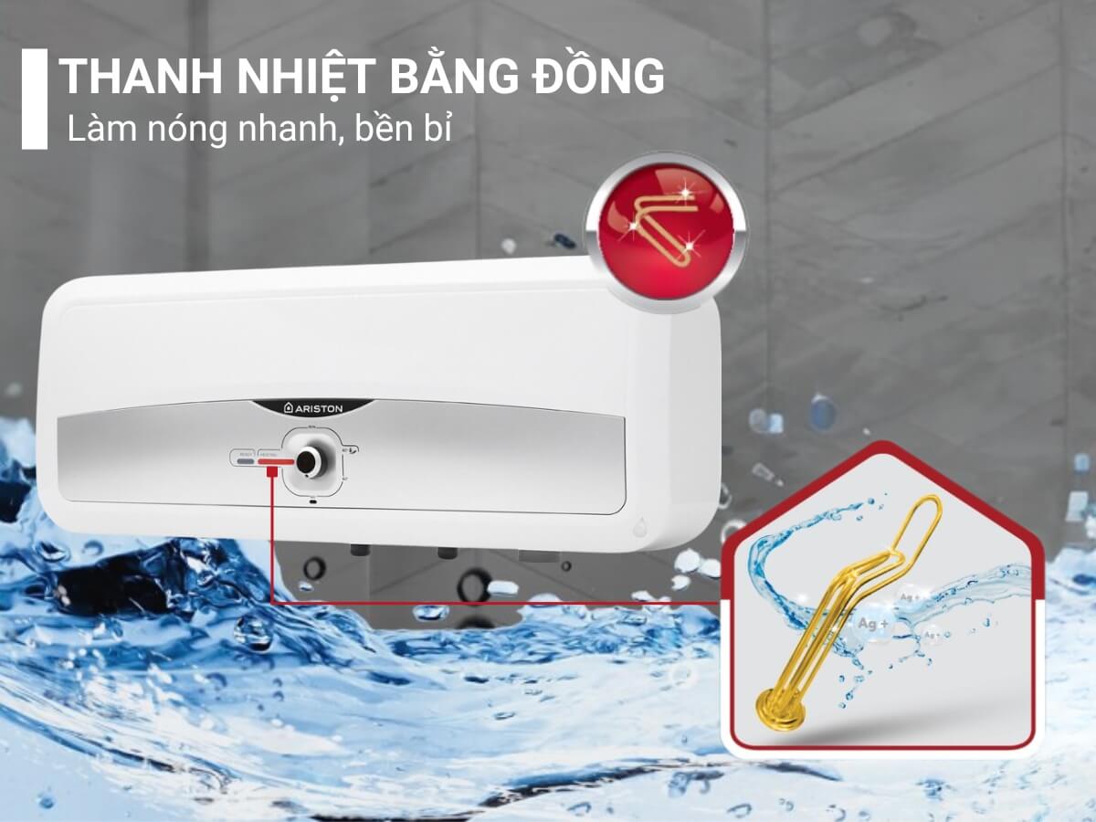 Máy sử dụng thanh đốt 100% làm bằng đồng cho khả năng gia nhiệt nhanh, bền bỉ nhờ khả năng chống ăn mòn tốt, hạn chế bám cặn trong quá trình sử dụng.