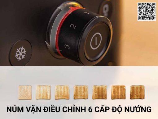 – Núm vặn điều chỉnh 6 cấp độ nướng, phù hợp để nướng sơ đến nướng vàng giòn theo sở thích
