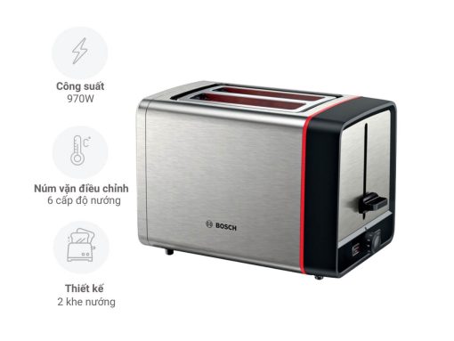 – Máy nướng bánh mì Bosch TAT6M420 có công suất 970W giúp nướng nhanh chóng, tiết kiệm thời gian.