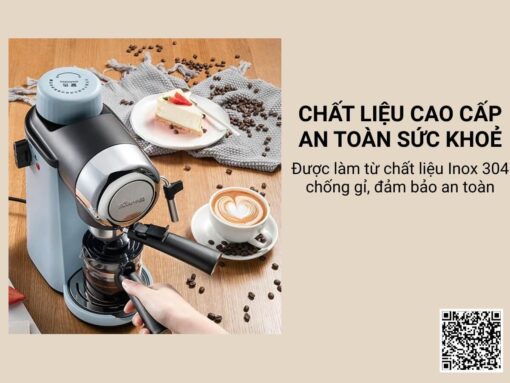 Máy pha cà phê Bear CF-B02V1 với các bộ phận tiếp xúc trực tiếp với cà phê như lưới lọc, tay cầm phễu lọc, vòi rót cà phê, vòi đánh bọt đều được làm từ Inox 304 cao cấp, chống gỉ, đảm bảo an toàn cho sức khoẻ. Bên cạnh đó là bình đựng nước bằng thuỷ tinh chịu nhiệt, an toàn, thân bình có vạch chia mực nước giúp bạn dễ dàng đong được lượng nước phù hợp theo nhu cầu.