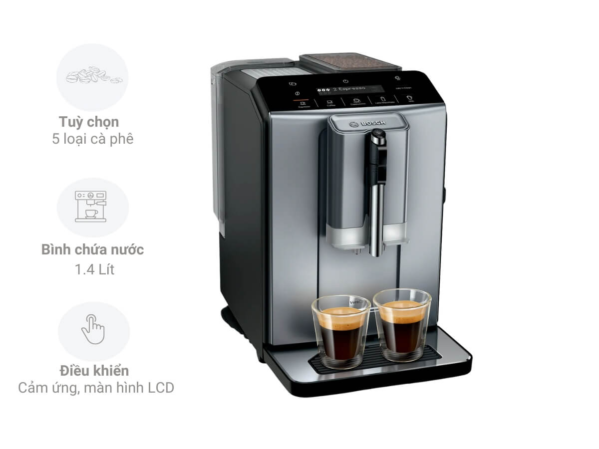 Máy pha cà phê Bosch TIE20119 thiết kế nhỏ gọn, sang trọng, điều khiển cảm ứng hiện đại