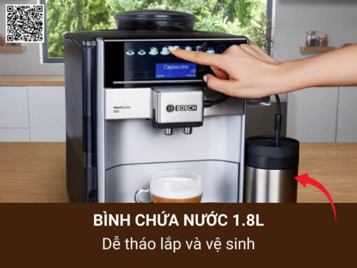 Máy pha cà phê Bosch TIS65621RW trang bị bình chứa nước 1.8L, thoải mái chứa nước để sử dụng mà không cần phải chêm nước thường xuyên. Bình cũng được thiết kế tháo rời dễ vệ sinh và thêm nước khi cần.