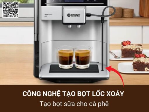Máy pha cà phê Bosch TIS65621RW thiết kế vòi đánh bọt sữa với công nghệ tạo bọt lốc xoáy biến đổi các loại sữa khác nhau thành bọt sữa ngon nhất, thơm mịn và đậm đặc nhất, hoàn hảo cho các loại cà phê như cappuccino hay latte. Máy đi kèm 1 bình đựng sữa 500ml, chất liệu thép không gỉ cao cấp, an toàn và dễ vệ sinh.