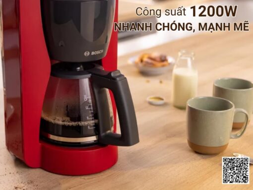 Máy pha cà phê Bosch TKA2M114 được trang bị công suất 1200W mạnh mẽ, giúp đun nước nhanh và giúp bạn nhanh chóng có ngay ly cà phê thơm ngon mà không cần chờ đợi quá lâu.