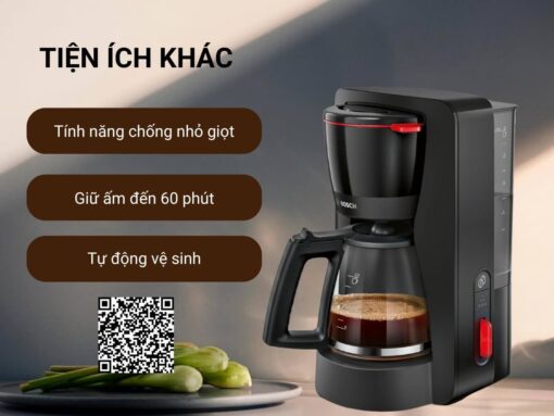 Máy pha cà phê Bosch TKA3M133 còn được tích hợp nhiều tiện ích đi kèm, tăng thêm trải nghiệm tiện lợi cho người dùng: