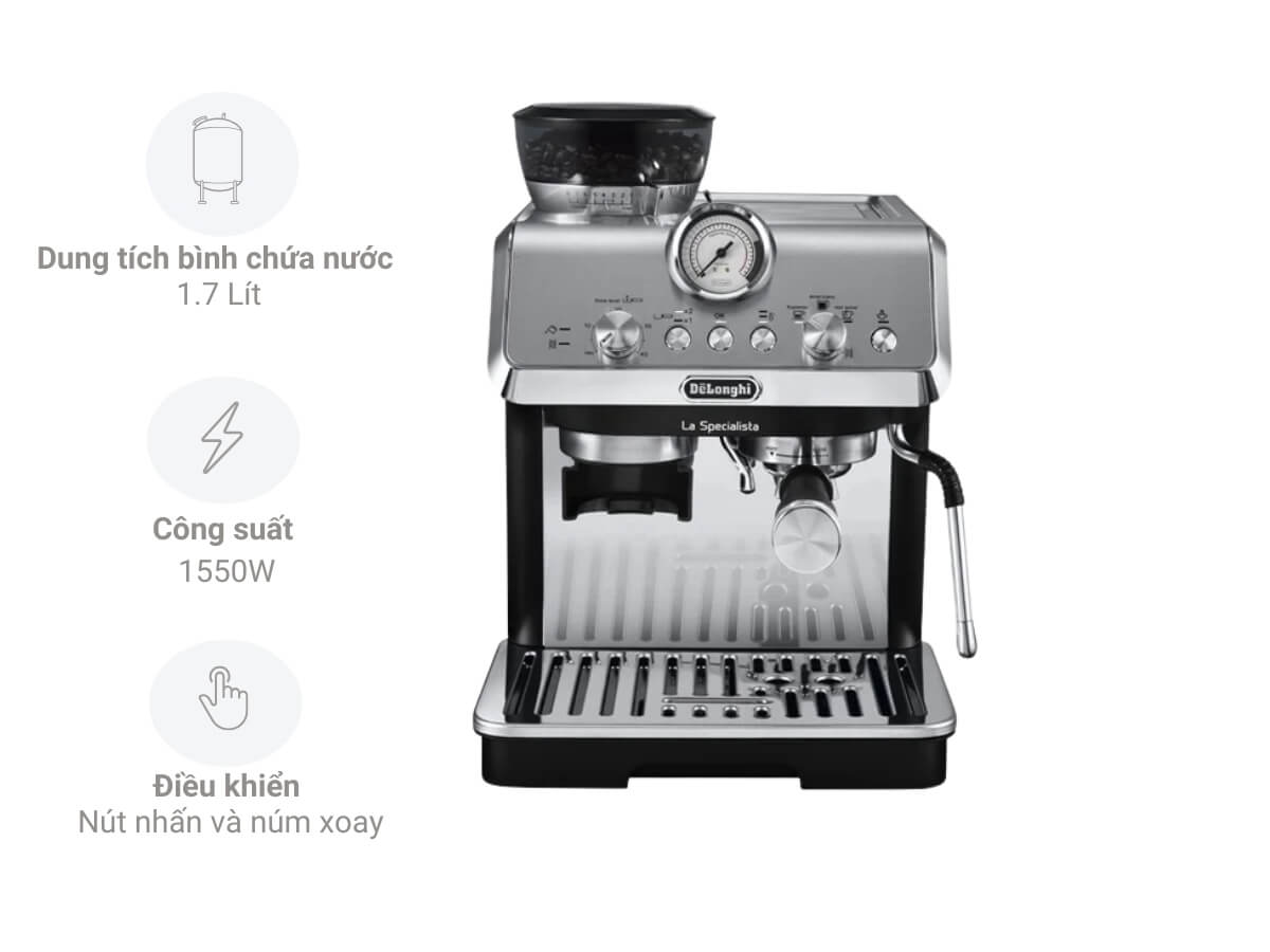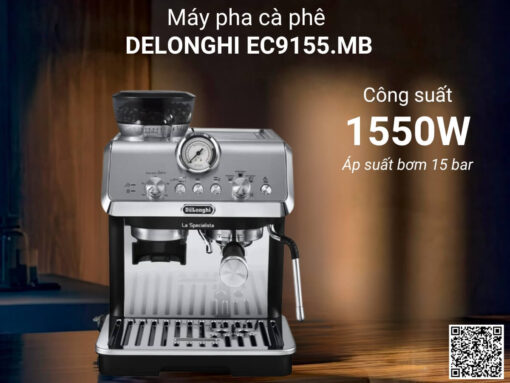 Máy pha cà phê Delonghi EC9155.MB thuộc dòng máy cà phê bán tự động được thiết kế để mang lại trải nghiệm pha chế cà phê đích thực, cho phép bạn tự tay tạo ra những ly cà phê chuẩn barista ngay tại nhà. Với bộ phụ kiện chuyên nghiệp, máy xay tích hợp 8 mức độ và hệ thống đánh sữa My Latte Art, chiếc máy này là người bạn đồng hành lý tưởng cho những ai yêu thích sự sáng tạo và muốn hoàn thiện kỹ năng pha chế của mình.