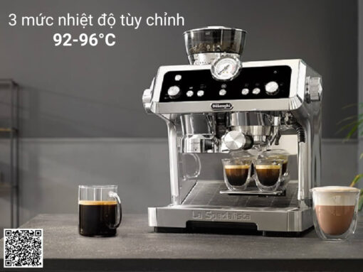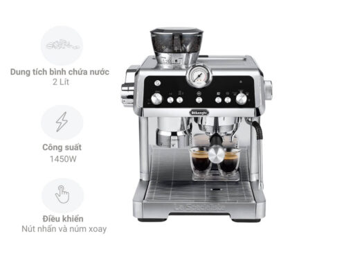 Máy pha cà phê Delonghi EC9355.M sở hữu thiết kế sang trọng, chuyên nghiệp, tạo điểm nhấn đẳng cấp cho không gian sử dụng, phù hợp cho những ai đam mê cà phê và muốn tự tay tạo ra những ly cà phê chuẩn barista ngay tại nhà. Tích hợp những công nghệ tiên tiến như xay cảm biến, nén thông minh và kiểm soát nhiệt độ chủ động, máy giúp bạn dễ dàng kiểm soát mọi công đoạn để có được những ly cà phê thơm ngon, hoàn hảo nhất.