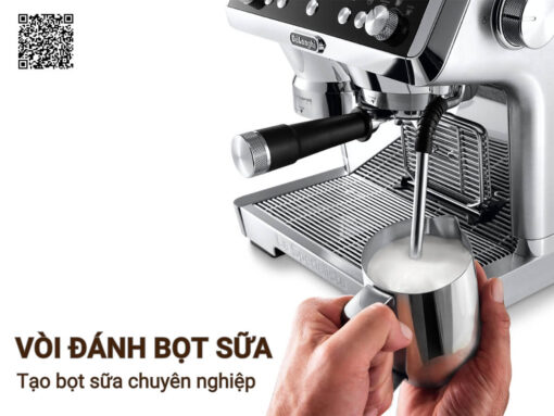Máy pha cà phê Delonghi EC9355.M được trang bị vòi hơi dài đa chiều thuộc hệ thống đánh sữa nâng cao. Thiết kế này giúp bạn dễ dàng thao tác, tạo ra lớp bọt sữa dày, mịn và xốp hoàn hảo để thực hiện các món Cappuccino, Latte Macchiato hay sáng tạo nghệ thuật Latte Art.