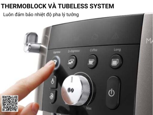 Hệ thống De’Longhi Thermoblock giúp gia nhiệt nhanh chóng và kiểm soát nhiệt độ nước một cách chính xác, đảm bảo mỗi tách cà phê đều được pha ở nhiệt độ lý tưởng. Bên cạnh đó, hệ thống De’Longhi Tubeless giúp giảm thiểu lượng bột cà phê còn sót lại trong máy sau mỗi lần xay, đảm bảo rằng chỉ có cà phê mới xay được sử dụng cho mỗi lần pha.