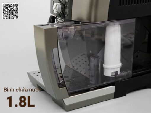 Máy pha cà phê Delonghi ECAM250.33.TB trang bị bình chứa nước 1.8L, thoải mái chứa nước để sử dụng mà không cần phải chêm nước thường xuyên. Bình cũng được thiết kế tháo rời dễ vệ sinh và thêm nước khi cần.