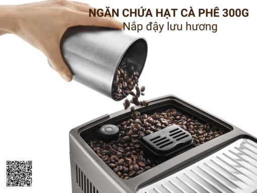 Máy pha cà phê Delonghi ECAM370.95.T có dung tích 300g, với thiết kế nắp kín lưu hương giúp giữ được độ tươi và mùi thơm tự nhiên của hạt cà phê trong một thời gian dài, đồng thời cũng làm hạn chế bớt tiếng ồn khi máy pha cà phê hoạt động.