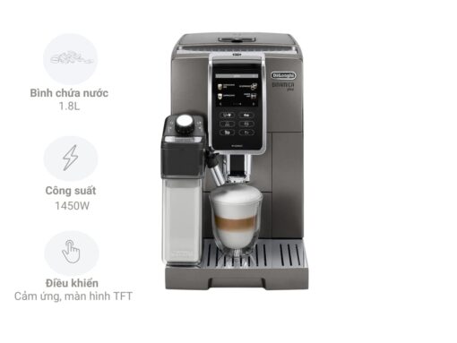 Máy pha cà phê Delonghi ECAM370.95.T hoạt động với công suất 1450W và áp suất bơm 19 bar chuyên nghiệp, đảm bảo chiết xuất cà phê nhanh chóng và tối ưu. Máy được trang bị 2 hệ thống nhiệt riêng biệt (1 Thermoblock cho cà phê và 1 cho các món từ sữa),