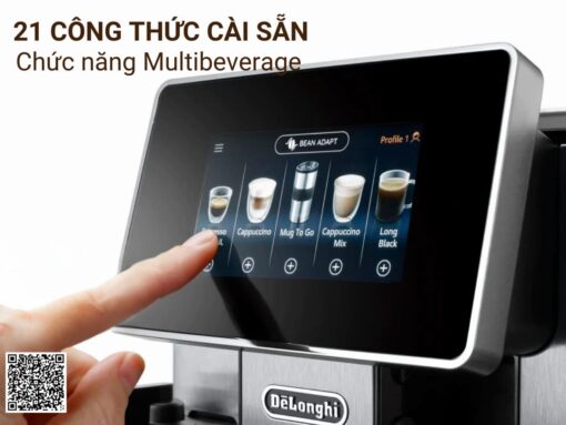 Máy pha cà phê Delonghi ECAM610.75.MB là sự kết hợp hoàn hảo giữa thiết kế PrimaDonna Soul sang trọng và công nghệ pha chế đỉnh cao, là lựa chọn lý tưởng cho gia đình, văn phòng hay những không gian đẳng cấp. Điểm nhấn của máy là công nghệ Bean Adapt độc quyền, tự động điều chỉnh các thông số xay và pha để chiết xuất trọn vẹn hương vị của từng loại hạt cà phê. Cùng với hệ thống LatteCrema trứ danh và màn hình cảm ứng màu 4.3 inch, việc sáng tạo nên ly cà phê chuẩn gu từ espresso, cappuccino đến các thức uống độc đáo khác trở nên dễ dàng và chuyên nghiệp hơn bao giờ hết.