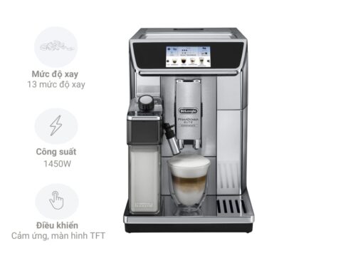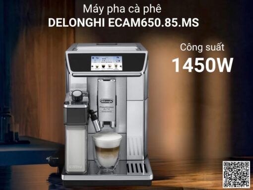 Máy pha cà phê tự động Delonghi ECAM650.85.MS sở hữu thiết kế sang trọng, tạo điểm nhấn ấn tượng cho không gian sử dụng, phù hợp dùng cho gia đình, văn phòng, khách sạn… Chức năng xay và pha cà phê tự động, có thể tạo bọt sữa mịn mướt, giúp bạn nhanh chóng có được ly cà phê thơm ngon đúng chuẩn. Với màn hình cảm ứng màu 4.3 inch trực quan và khả năng kết nối với ứng dụng thông minh, bạn có thể dễ dàng sáng tạo và tùy chỉnh mọi loại đồ uống từ espresso, cappuccino đến socola nóng hay trà. Ngoài ra Hệ thống “LatteCrema” độc quyền đảm bảo lớp bọt sữa dày mịn hoàn hảo.