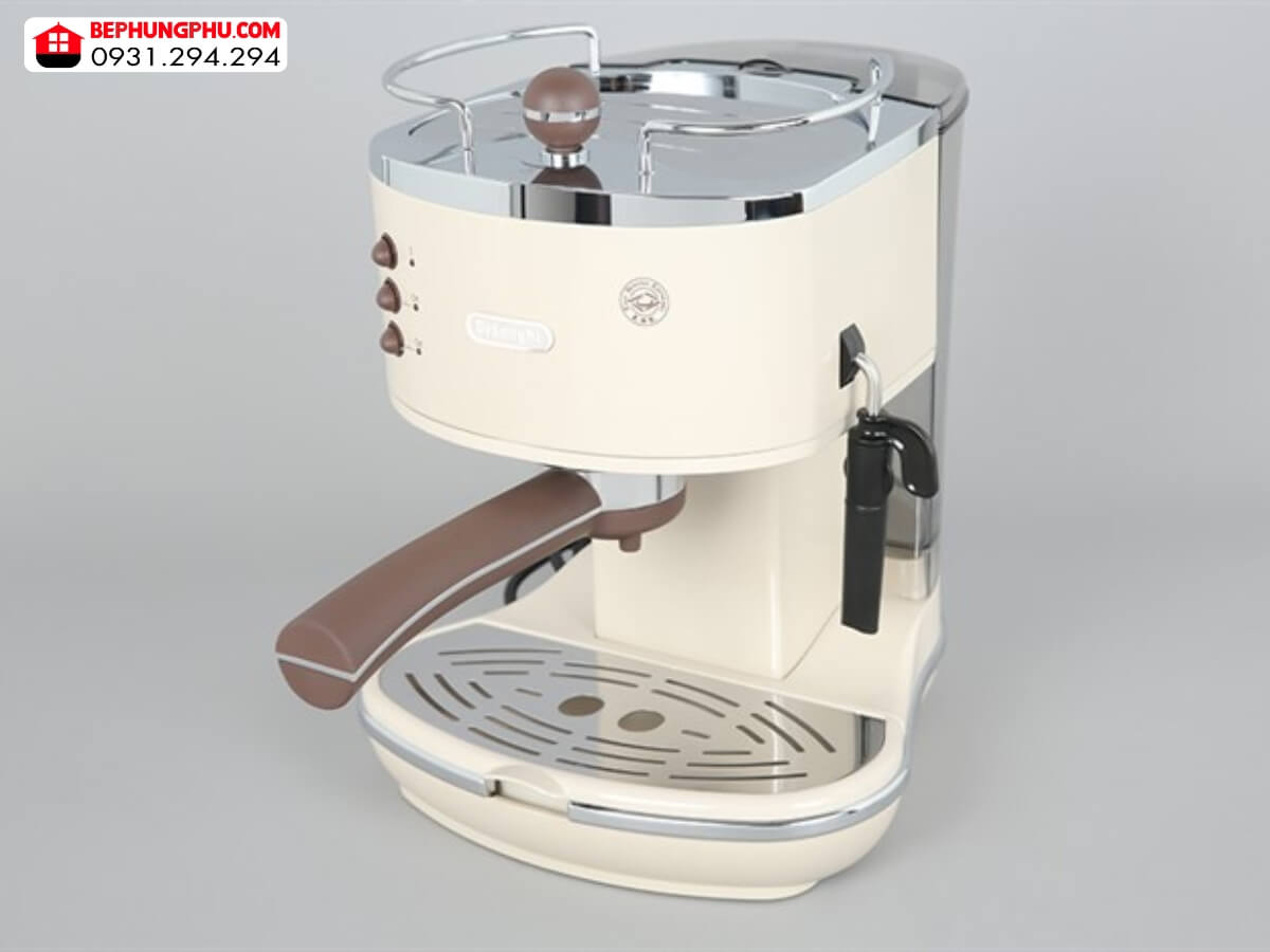 Máy pha cà phê DeLonghi ECOV311.BG có kích thước khá nhỏ gọn, dễ dàng bố trí trong không gian mà không chiếm nhiều diện tích. Máy được thiết kế cổ điển Icona Vintage phong cách Ý sang trọng với vỏ máy bằng kim loại phủ sơn bóng loáng, màu be trang nhã, bề mặt nhẵn bóng dễ lau chùi, vệ sinh. Kết hợp với viền inox sáng bóng, tạo điểm nhấn thẩm mỹ cho không gian sử dụng.
