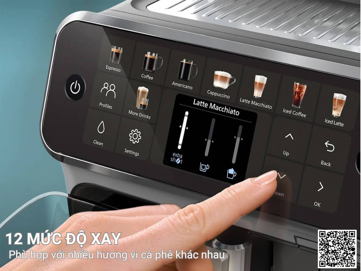 Với Máy pha cà phê Philips EP5547/90 bạn không chỉ điều chỉnh nhiều mức độ xay mà còn có thể điều chỉnh nhiệt độ nước nóng, lượng nước và độ đậm đặc của cà phê, cho phép cá nhân hóa tối đa ly cà phê của bạn.