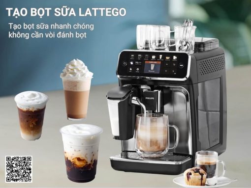 Máy pha cà phê Philips EP5547/90 được trang bị hệ thống sữa LatteGo tiên tiến, không có ống dẫn. Hệ thống này biến đổi các loại sữa khác nhau thành bọt sữa ngon nhất, thơm mịn và đậm đặc nhất, hoàn hảo cho cappuccino hay latte. Đặc biệt, bình sữa 0.26L có thể tháo lắp và vệ sinh cực kỳ nhanh chóng.