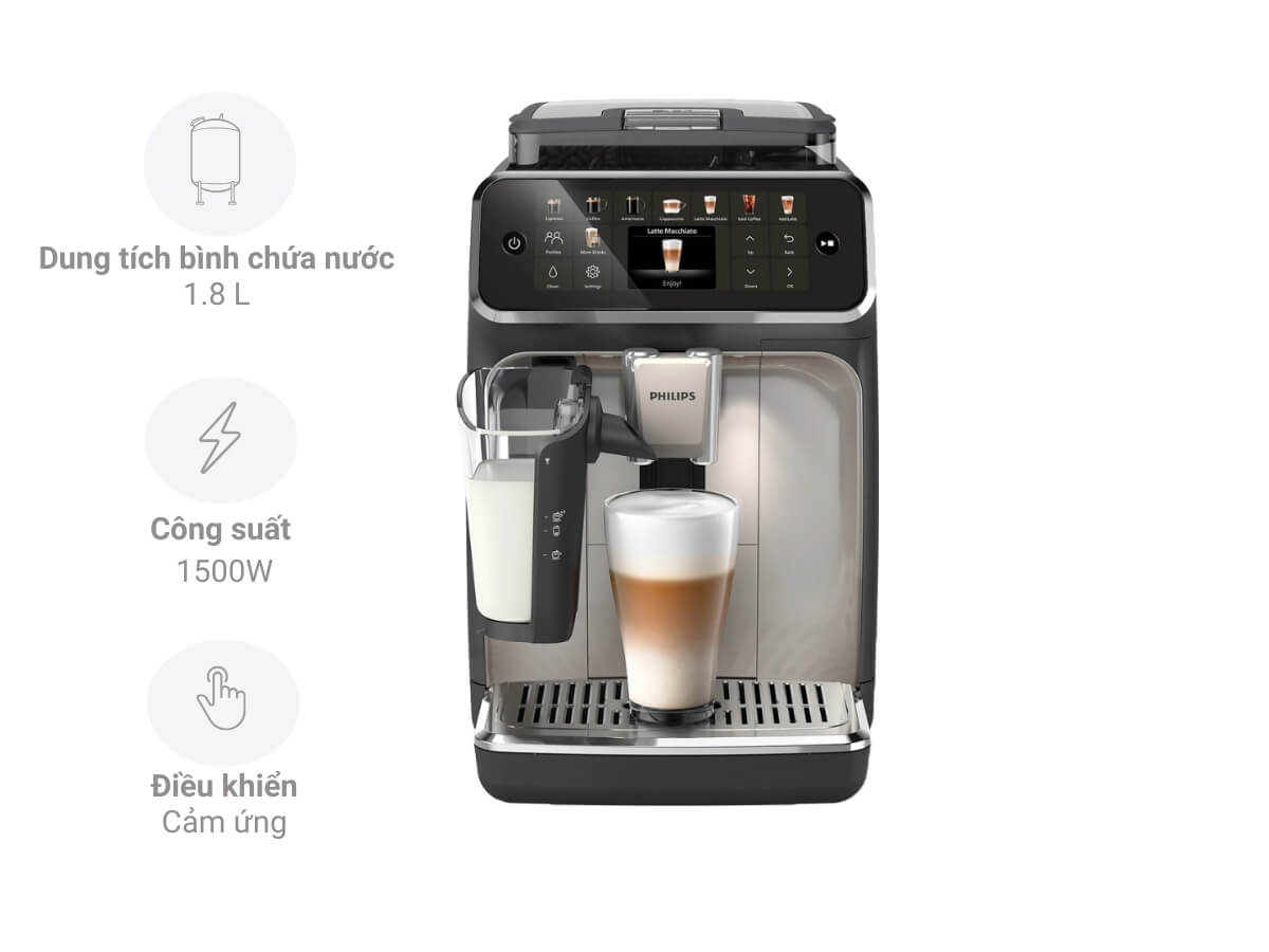Máy pha cà phê Philips EP5547/90 thiết kế nhỏ gọn, sang trọng, điều khiển cảm ứng trực quan