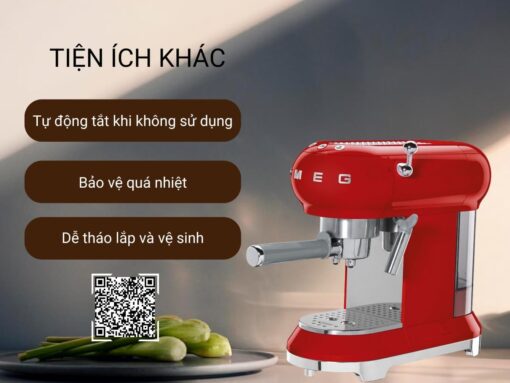 Máy pha cà phê Smeg ECF01RDEU còn được tích hợp nhiều tiện ích đi kèm, tăng thêm trải nghiệm tiện lợi cho người dùng: